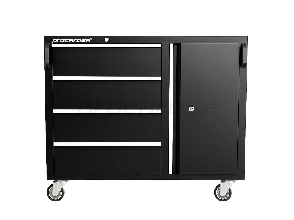 Tento dielenský box je možné využiť ako samostatne stojaci prvok alebo ako súčasť zostáv Procarosa PROFI. Vďaka svojej výške ho ľahko zasuniete medzi ostatné spodné skrinky a elegantne uložíte pod pracovnú dosku. Na čelnej strane je vozík vybavený dvomi madlami, ktoré uľahčujú manipuláciu a vysunutie z priestoru. Disponuje tiež štyrmi otočnými kolieskami, z ktorých jedno je vybavené brzdou.