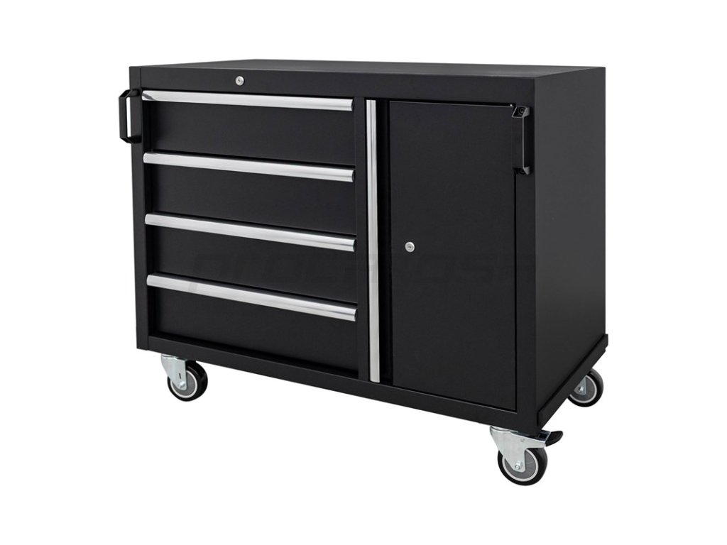 Dielenský uzamykateľný box Procarosa PROFI TGC-1341W je vybavený štyrmi zásuvkami na guľôčkových ložiskách a praktickou bočnou skrinkou na rozšírenie úložného priestoru, ktorá je osadená výškovo nastaviteľnou policou umožňujúcou prispôsobenie vnútorného usporiadania podľa vašich potrieb.. Zásuvky sú doplnené protišmykovými penovými podložkami, ktoré zároveň pohlcujú zvuk.