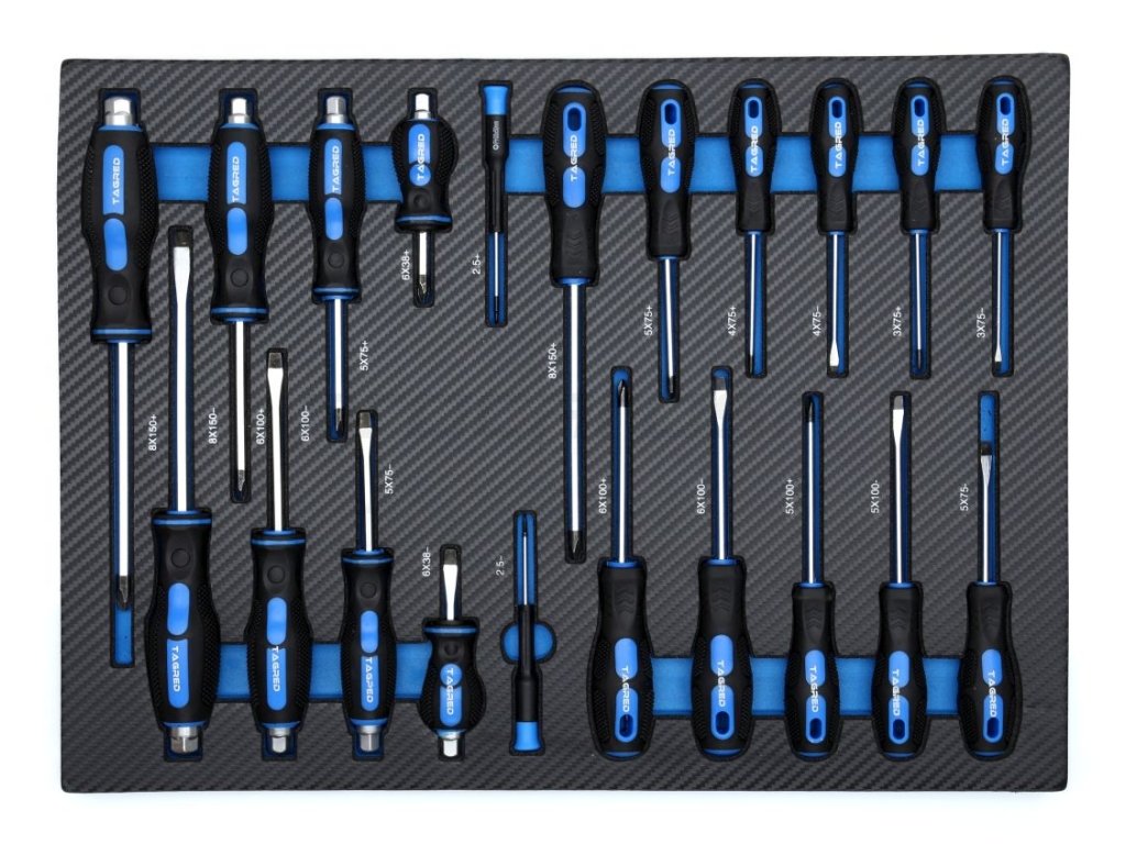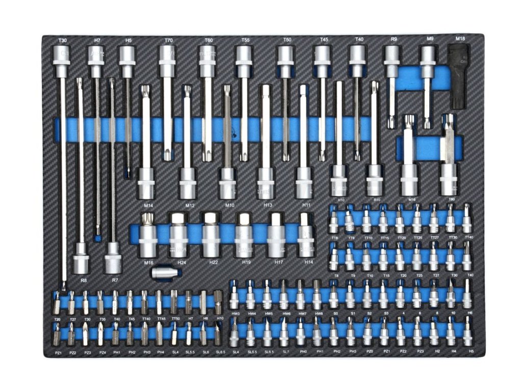 zástrčné hlavice TORX 1/4": T8 – T9 – T10 – T15 – T20 – T25 – T27 – T30zástrčné hlavice TORX s otvorom 1/4": TT8 – TT9 – TT10 – TT15 – TT20 – TT25 – TT27 – TT30zástrčné hlavice Imbus 1/4": 3 – 4 – 5 – 6 – 7 – 8 mmzástrčné hlavice Imbus 1/4“: 2 – 4 – 5 – 6 mmzástrčné hlavice 1/4“ Robertson: S0 – S1 – S2 – S3zástrčné hlavice 1/4“ na demontáž antény (ploché s výrezom): 4 – 6 – 8 – 10zástrčné hlavice 1/4“ krížové Philips (tzv. jednoduchý kríž): PH0 – PH1 – PH2 – PH3zástrčné hlavice 1/4“ krížové POZIDRIV (tzv. dvojitý kríž): PZ0 – PZ1 – PZ2 – PZ3zástrčné hlavice 1/4“ ploché FD: 4 – 5,5 – 6,5 – 7 mmbity Imbus: 7 – 8 – 10 mmbity krížové Philips (tzv. jednoduchý kríž): PH1 – PH2 – PH3 – PH4bity krížové POZIDRIV (tzv. dvojitý kríž): PZ1 – PZ2 – PZ3 – PZ4bity ploché: 4 – 5,5 – 6 – 6,5 mmbity TORX: T20 – T27 – T30 – T35 – T40 – T45bity TORX: 40 – 45 – 50adaptér 1/2" až 3/8"hlavica Imbus 1/2“ na výpusti olejových vaní: H14 – 17 – 19 – 22 – 24hlavica Spline 1/2“ na výpusti olejových vaní: M16hlavice Spline 1/2“ predĺžené na výpusti olejových vaní: náraz M6 – M10 – M12 – M14 – M16 – M18hlavica Ribe 1/2": R7 - R8 - R9 - R10hlavica TORX 1/2“ predĺžené: T30 – T40 – T45 – T50 – T55 – T60 – T70 – T80hlavica Imbus 1/2“ predĺžené: H5 – H7 – H10 – H11 – H133. zásuvka