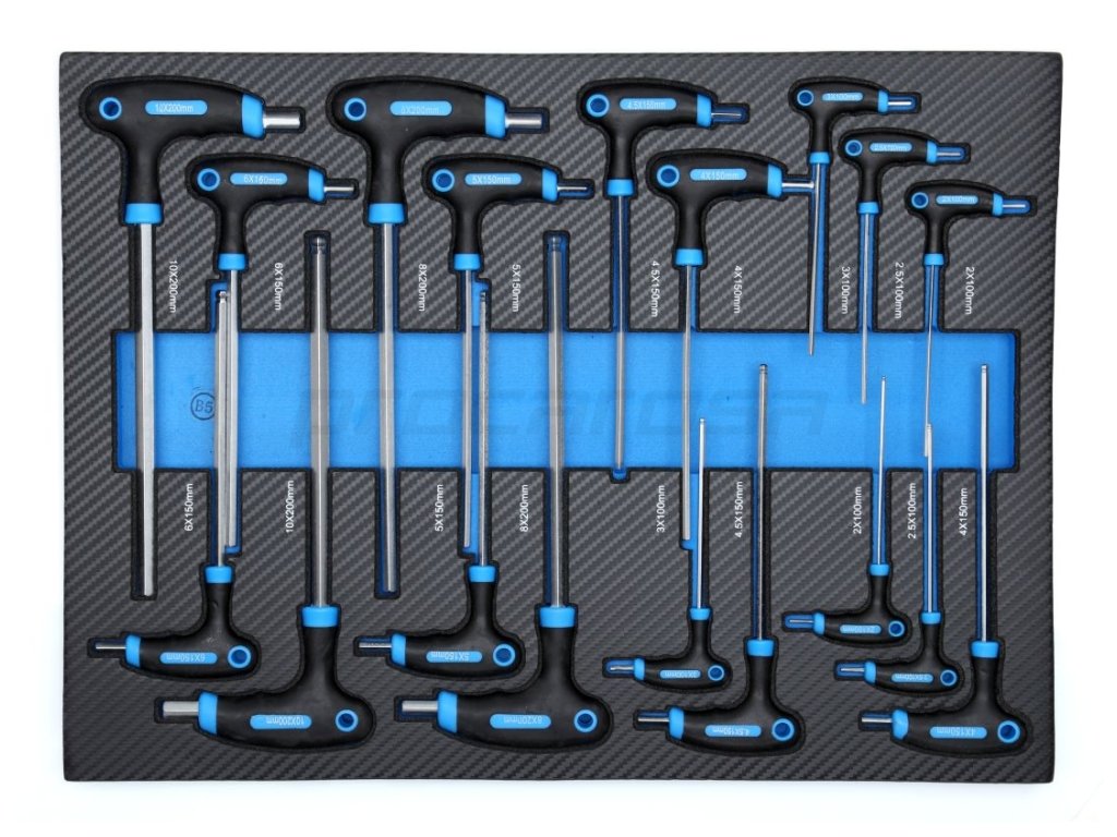 kľúče Imbus s T-rukoväťou: 2/2,5/3x100 mm/ 4/4,5/5/6x150 mm/8/10x200 mmkľúče Imbus s guľôčkou s T-rukoväťou: 2/2,5/3x100 mm/4/4,5/5/6x150 mm/8/10x200 mm6. zásuvka (ručné náradie)