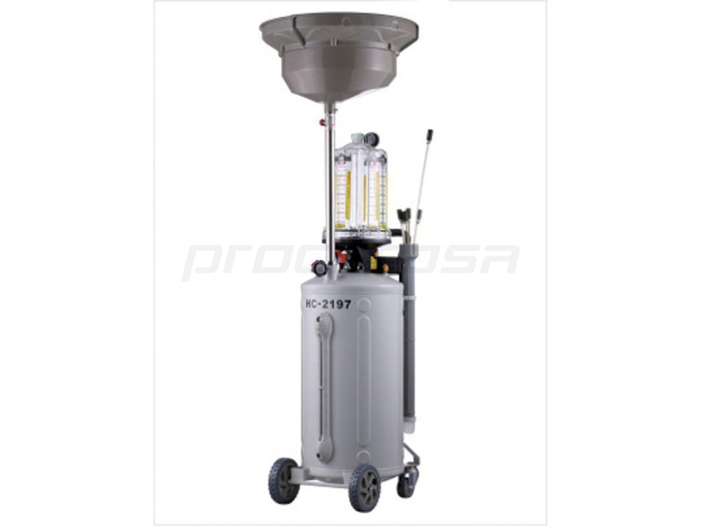 Olej sa samospádom vypustí do výškovo nastaviteľné vypúšťací vane, odkiaľ steká do odmerného valca so stupnicou pre meranie množstva oleja. Odtok môže byť zaistený ventilom, aby bolo možné skontrolovať olej ešte pred jeho odtokom do zásobníka. Vyprázdňovanie zásobníka je na pneumatické báze pripojením na stlačený vzduch, olej v tomto prípade vyteká cez pružnú hadicu s kovovou zahnutou koncovkou.