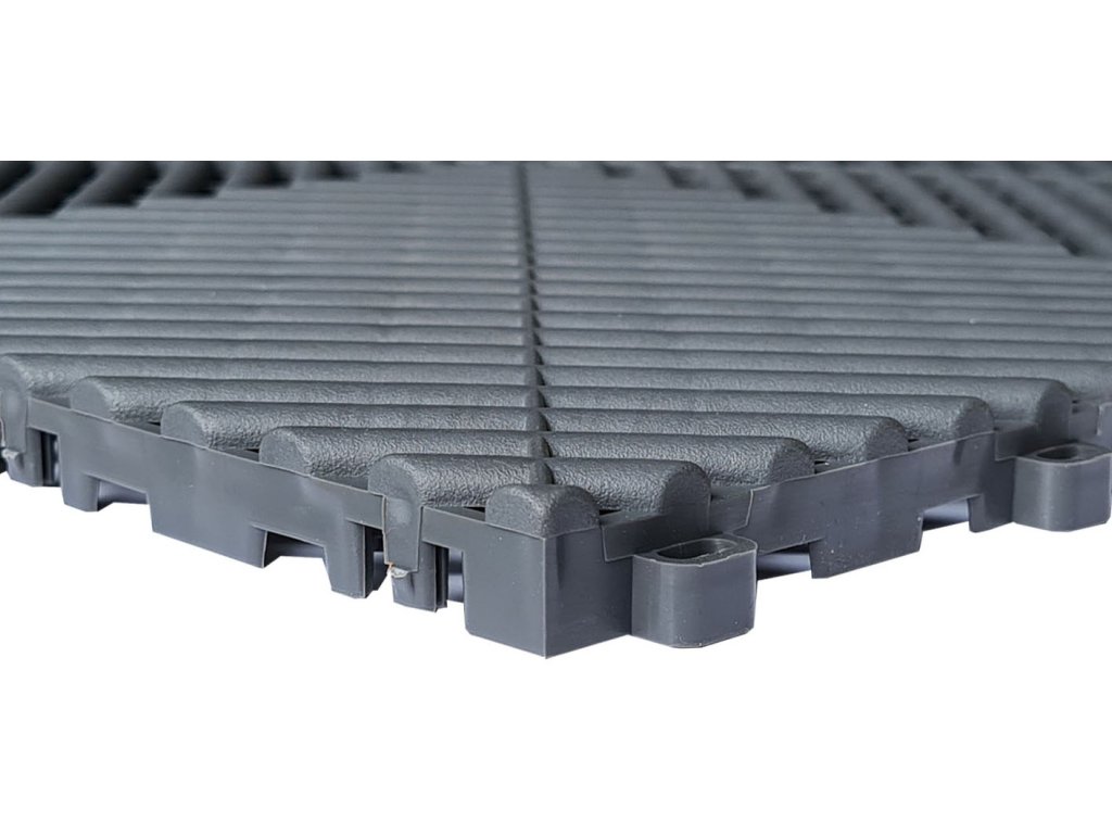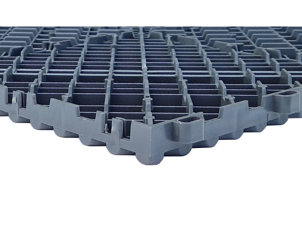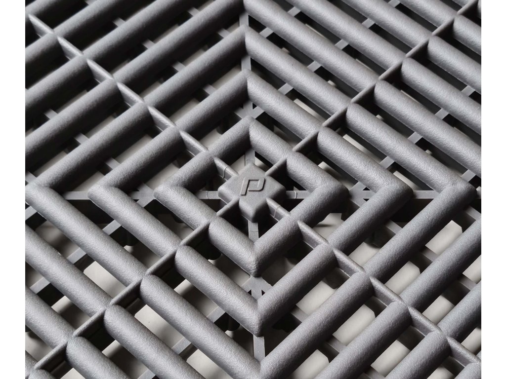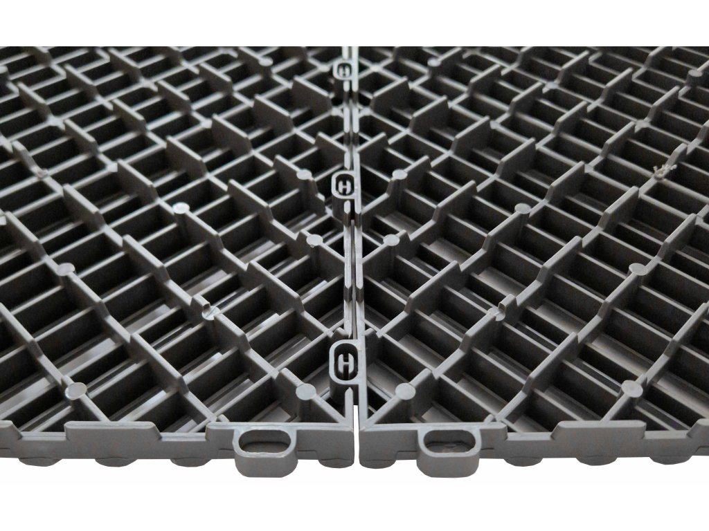- Otvorená mriežková štruktúra dlaždice umožňuje, aby nečistoty alebo akákoľvek kvapalina prechádzali povrchom podlahy, takže je podlaha stále suchá a protišmyková.