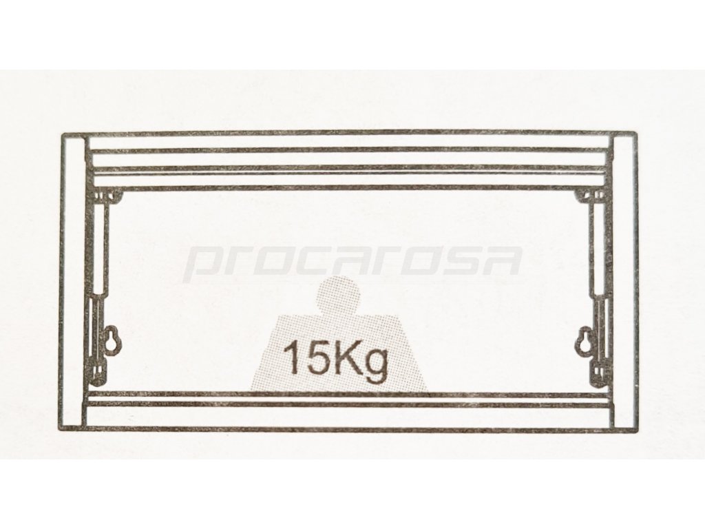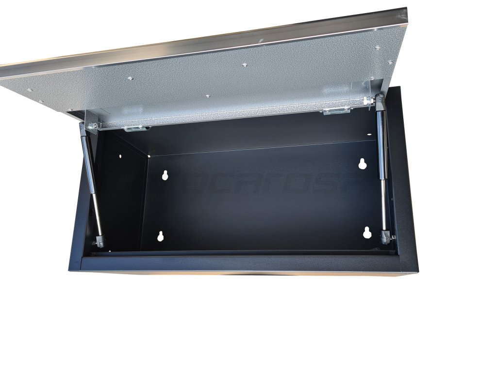 Celokovová závesná skrinka Procarosa PROFI WGB-1326 s výklopnými dvierkami, ktoré sú opatrené piestami. Pomocou priložených skrutiek môžete túto nástennú skrinku ľahko pripevniť k dierovanej doske.
