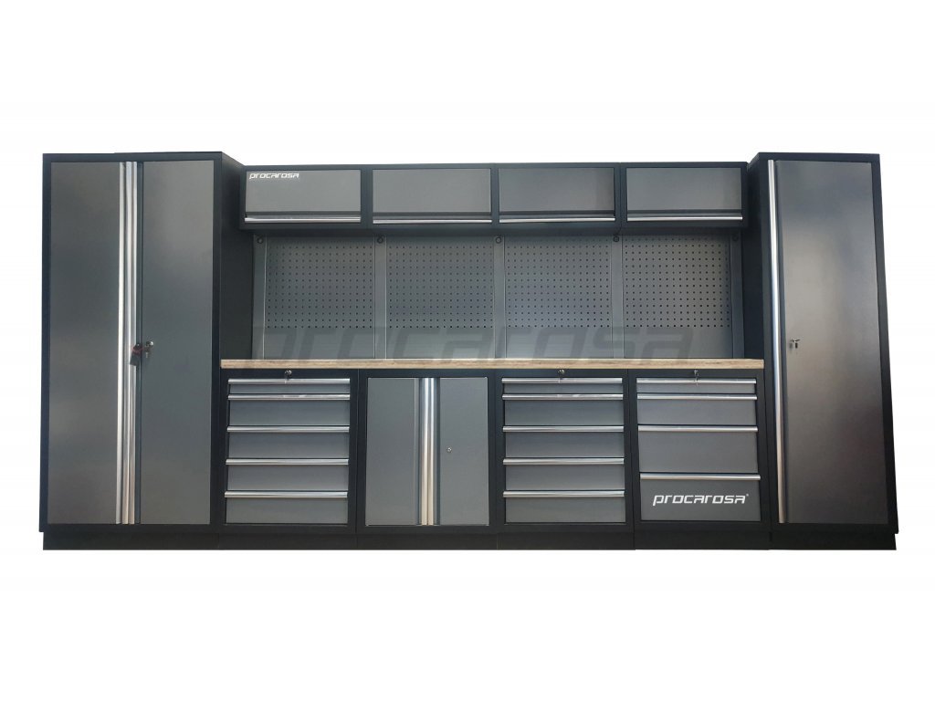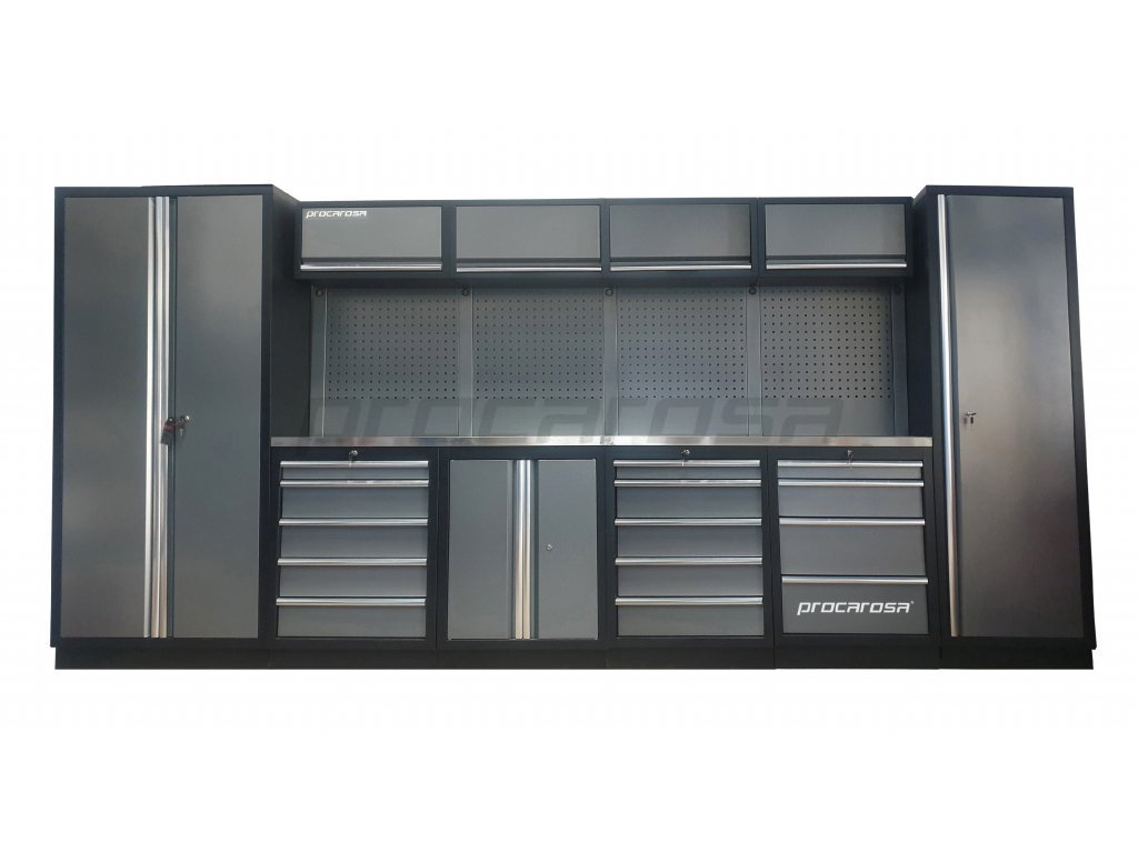 Zostava dielenského nábytku Procarosa PROFI PROFESSIONAL XL-6, vhodná ako do profesionálnych dielní a servisov, tak aj do garáží na uskladnenie ručného náradia, nástrojov, materiálov, vybraných súčiastok, dokumentácie a mnoho ďalších vecí, ktoré vo Vašom priestore potrebujete uskladniť.
